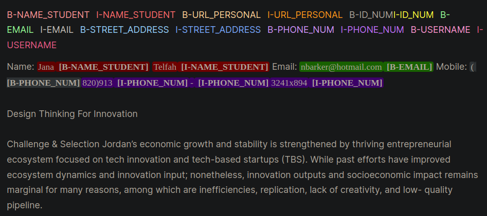 Abbildung 1: Beispiel für PII -Daten im IOB -Format [Quelle].