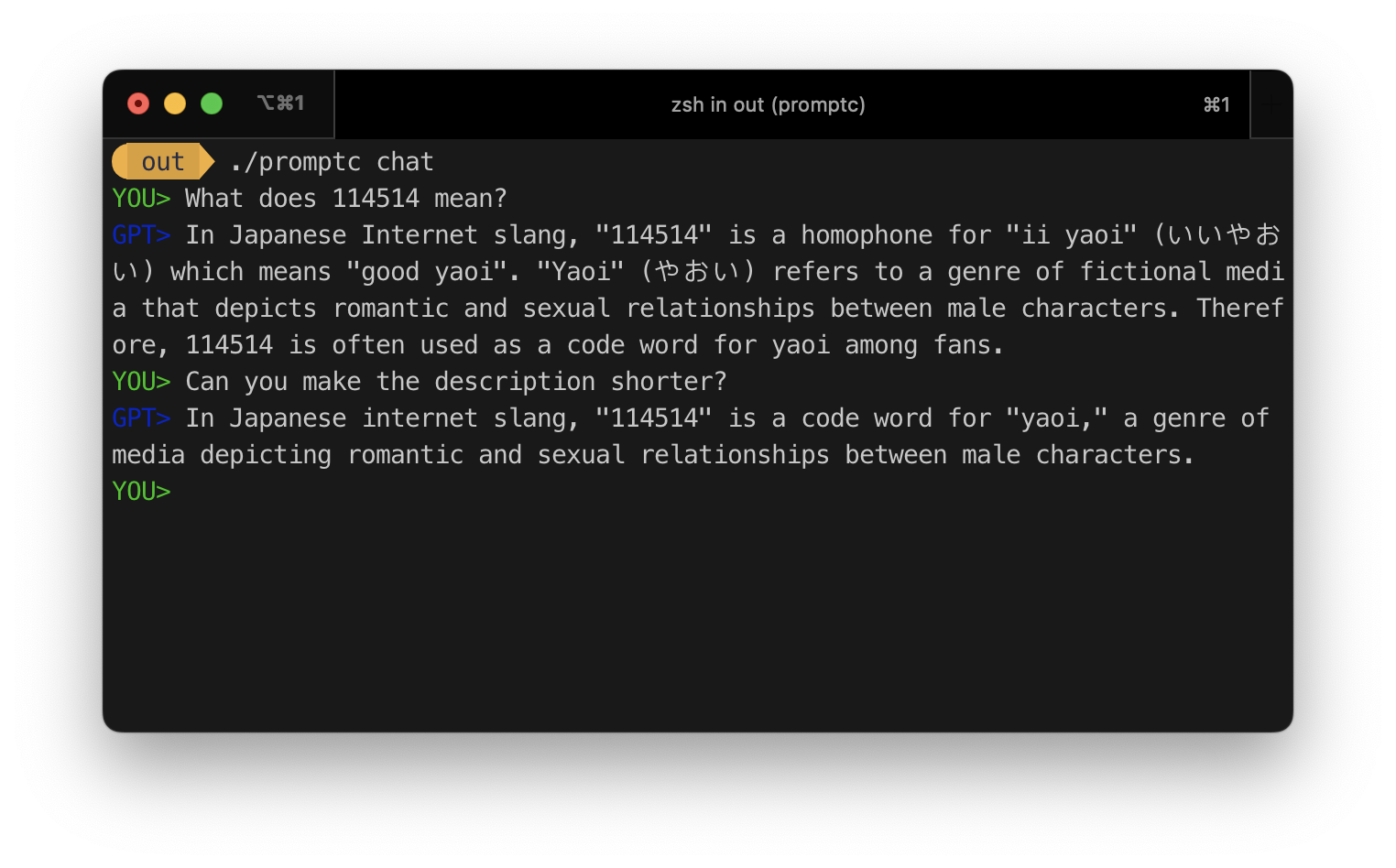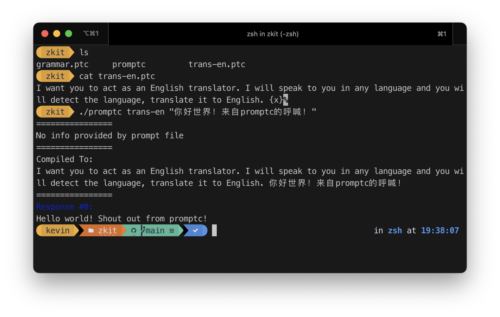 $ promptc $prompt $input