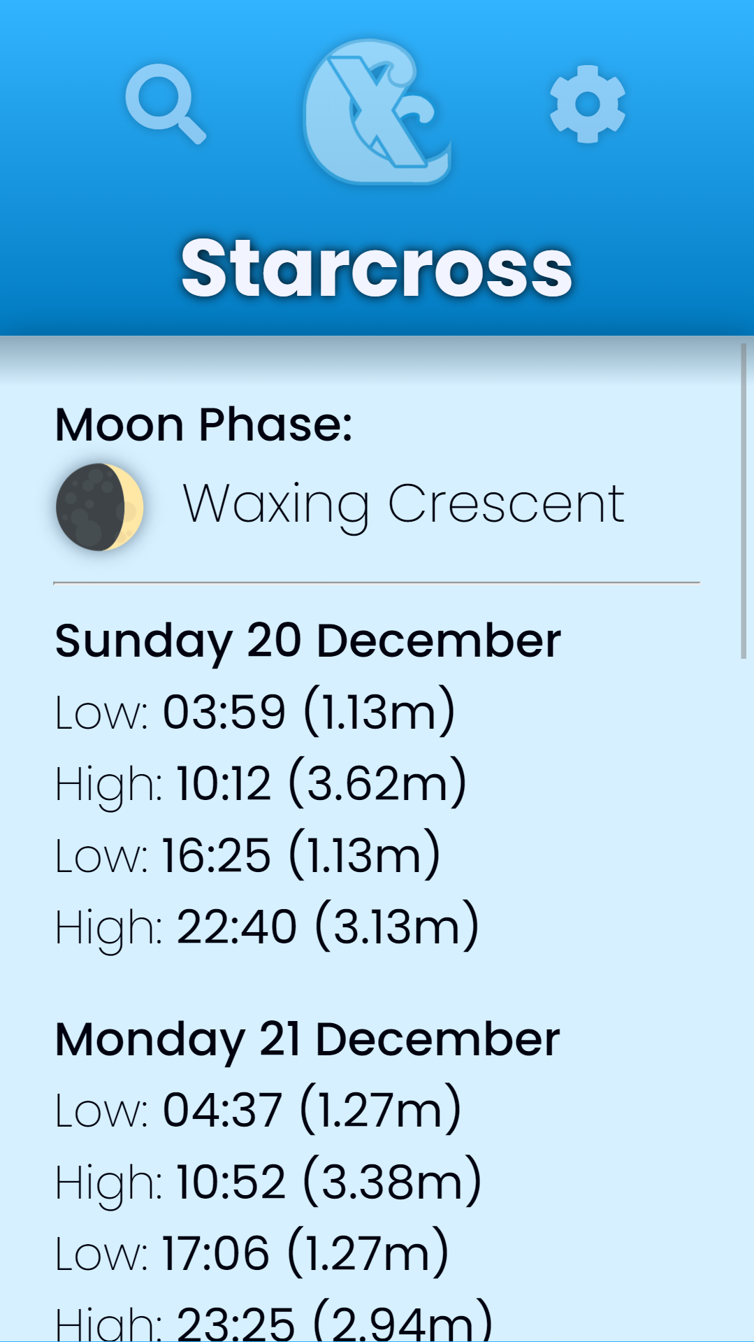 Eine schnelle und einfache Möglichkeit, die Gezeitenzeiten zu überprüfen.