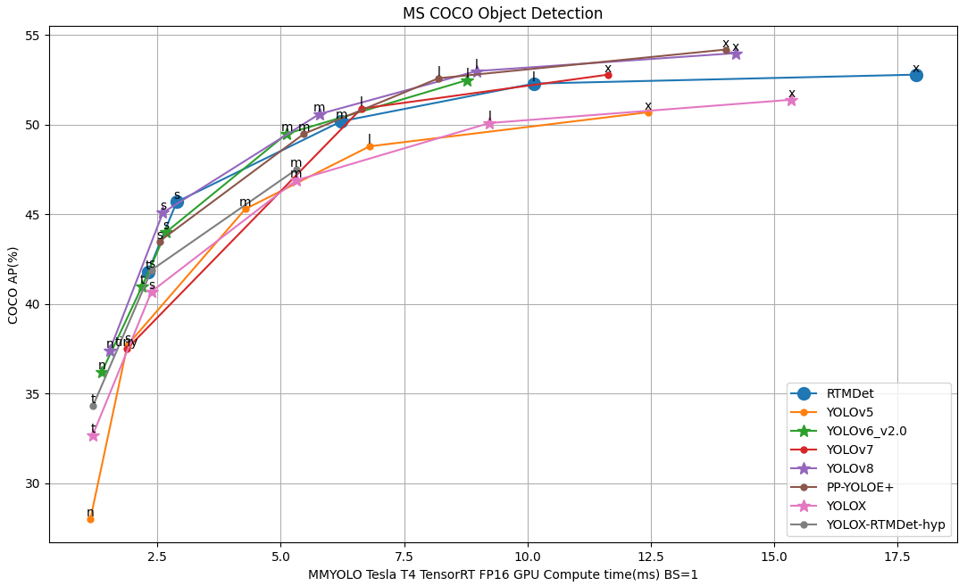 Wir freuen uns, unsere neuesten Arbeiten zu Echtzeit-Objekterkennungsaufgaben, RTMDET , einer Familie vollständig faltungsvoller einstufiger Detektoren bekannt zu geben. RTMDET erzielt nicht nur den besten Kompromiss der Parametergenauigkeit bei der Objekterkennung von winzigen bis extra-großen Modellgrößen, sondern erhält auch eine neue Leistungsleistung für die Instanzsegmentierung und die Erkennung von Objekten. Details finden Sie im technischen Bericht. Vorausgebildete Modelle sind hier.
