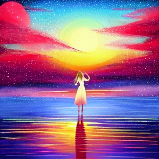 image . save ( "飞流.png" )| Iron Horse and Ice River kommt zu Traum, 3D -Gemälde. | Der Flug fließt dreitausend Fuß, ein Ölgemälde. | Rücken des Mädchens, Sonnenuntergang, schöne Illustration. |