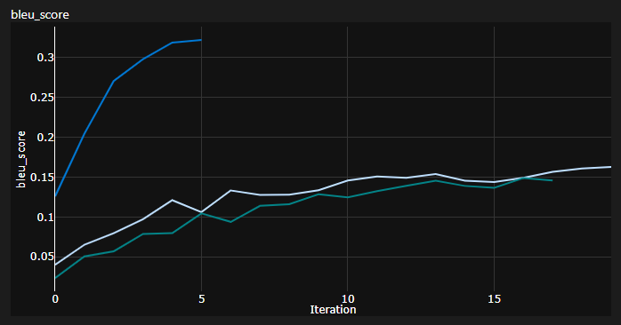 Was ich (vorerst) getan habe, ist, dass ich meine Modelle auf dem IWSLT-Datensatz trainiert habe, was für das englisch-deutsche Sprachpaar viel kleiner ist, da ich diese Sprachen spreche, damit es einfacher ist, zu debuggen und herumzuspielen.