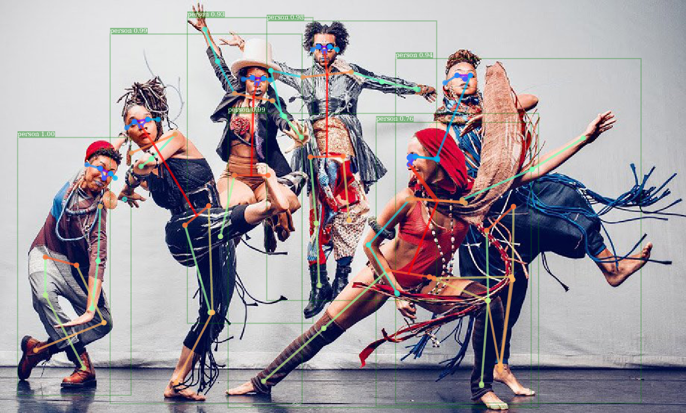 Beispielausgabe von e2e_keypoint_rcnn-r-50-fpn_s1x unter Verwendung von detektronen vorgezogenem Gewicht.