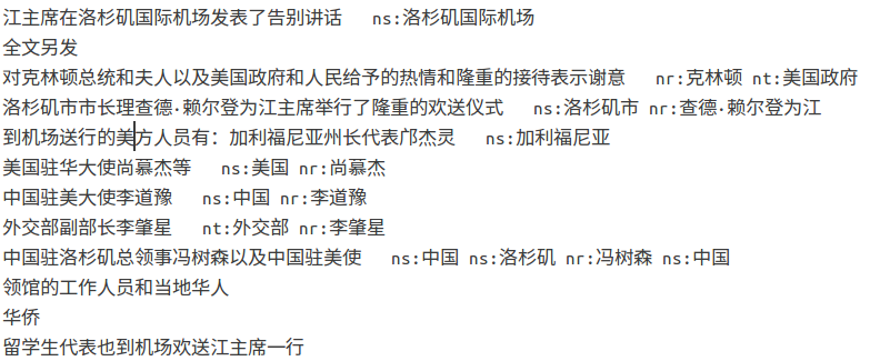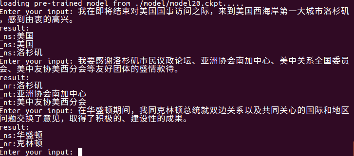 Es kann das neueste Modell automatisch im Modellordner lesen, die Entitäten in input_file extrahieren und in output_file schreiben. Zuerst gibt es den ursprünglichen Satz, dann der Entitätstyp und die Entität (können nach Bedarf geändert werden).