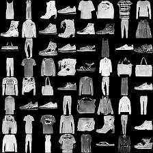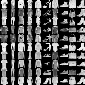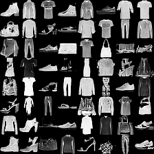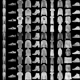Fashion-Mnist ist ein kürzlich vorgeschlagener Datensatz, der aus einem Trainingssatz von 60.000 Beispielen und einem Testsatz von 10.000 Beispielen besteht. Jedes Beispiel ist ein 28x28 Graustufenbild, das einem Etikett aus 10 Klassen zugeordnet ist. (T-Shirt/Top, Hosen, Pullover, Kleid, Mantel, Sandale, Hemd, Sneaker, Tasche, Knöchelstiefel)