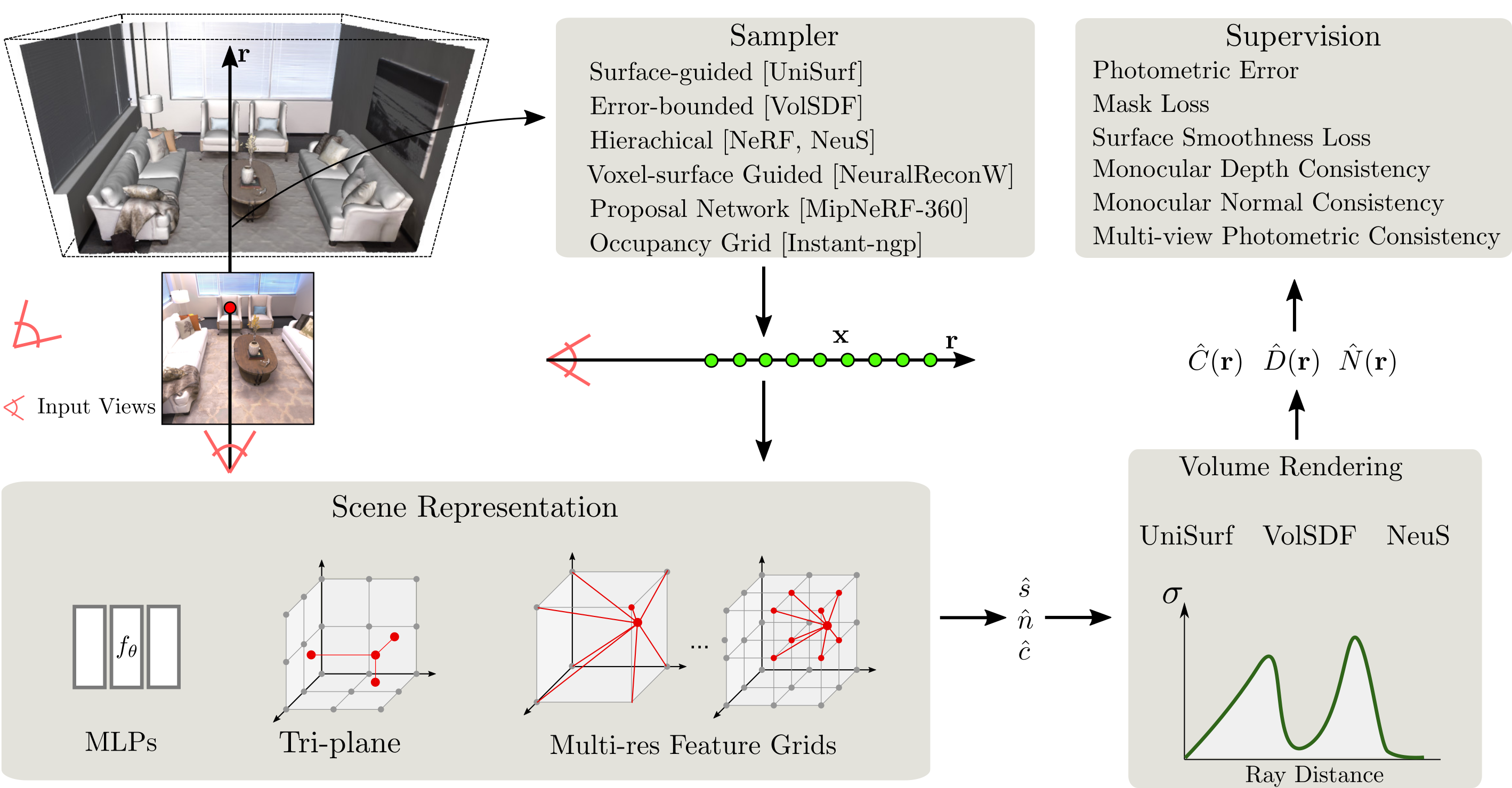 SDFStudio ist ein einheitliches und modulares Gerüst für die neuronale implizite Oberflächenrekonstruktion, die auf dem fantastischen Nerfstudio -Projekt aufgebaut ist. Wir bieten eine einheitliche Implementierung von drei wichtigen implizite Oberflächenrekonstruktionsmethoden: Unisurf, Volsdf und Neus. SDFSTUDIO unterstützt auch verschiedene Szenenpräsentationen wie MLPs, Tri-Plane und Mehrauflösungen. Feature Grids und mehrere Punkte-Stichprobenstrategien wie oberflächengeführte Stichproben wie in Unisurf und Voxel-Oberfläche geführte Probenahme von NeuralReconw. Es integriert die jüngsten Fortschritte in dem Gebiet weiter, wie beispielsweise die Utillisierung von monokularen Hinweisen (MonosDF), Geometrie-Regularisierung (UNISURF) und Multi-View-Konsistenz (GEO-Neue). Dank der einheitlichen und modularen Implementierung erleichtert SDFStudio es einfach, Ideen von einer Methode auf eine andere zu übertragen. Zum Beispiel wendet Mono-Neue die Idee von monosdf auf Neus an, und Geo-Volsdf wendet die Idee von Geo-Neus auf Volsdf an.