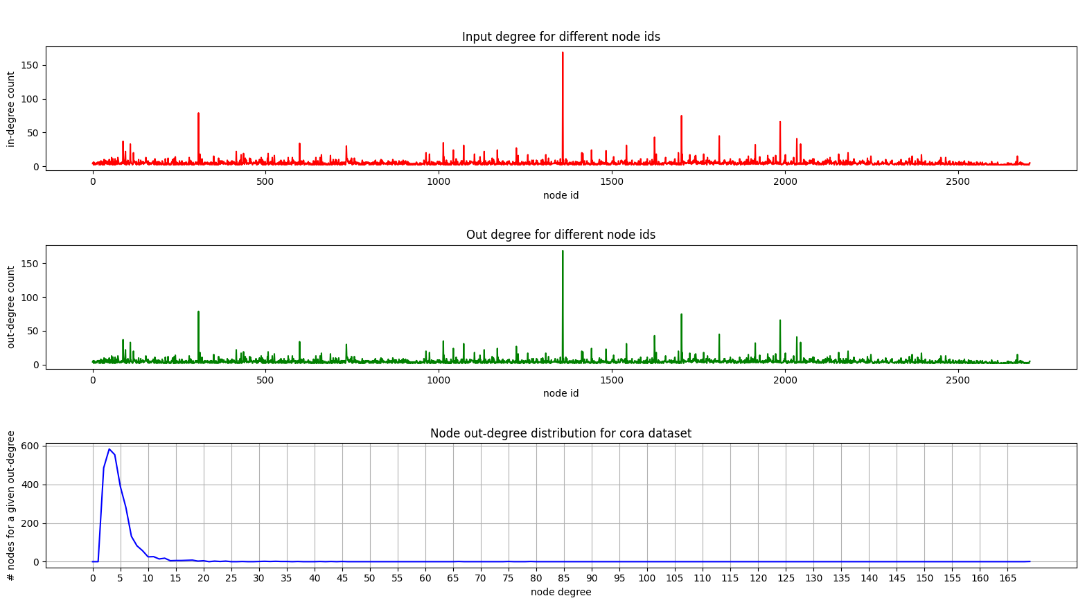 Und hier ist ein Diagramm, das die Gradverteilung auf Cora zeigt: