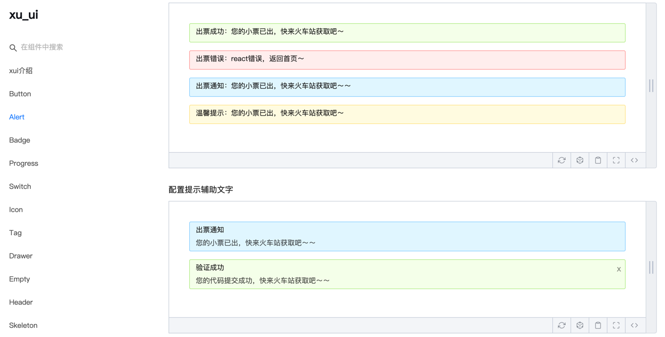 < Alert message = "success tip" description = "skfjdsalajdfjadkfjaldfhjaskdn你好,欢迎光临" closable type = "success" />