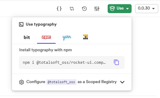 npm i @totalsoft_oss/rocket-ui.components.data-display.typographyWenn Sie alle Komponenten in Ihrem Projekt in nur einem Paket haben möchten. Navigieren Sie in Bit -Cloud zu Kernkomponente.