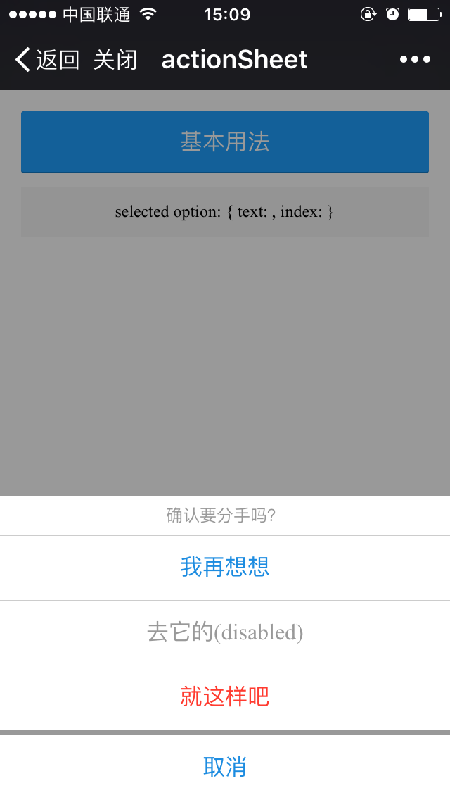 iakit . actionsheet ( { /* 你的选项 */ } )