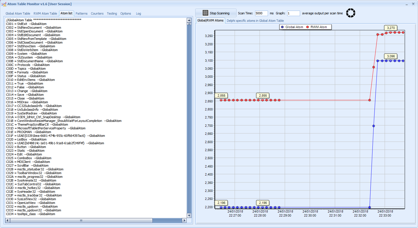 Mit Atom Table Monitor können alle erstellten Atome mit RegisterClass, RegisterClassex, GlobalAdDatom, Addatom oder Kennungen von RegisterWindowMessage -Funktionen überwacht werden und sicherstellen, dass unsere Anwendungen keine undakkenden Identifikatoren sind.
