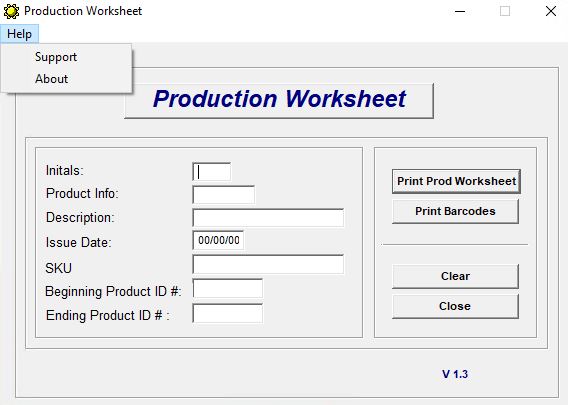 Dies ist ein kleines Dienstprogramm für Arbeitsblätter und Barcodes, die Produktionsarbeitsblätter drucken.