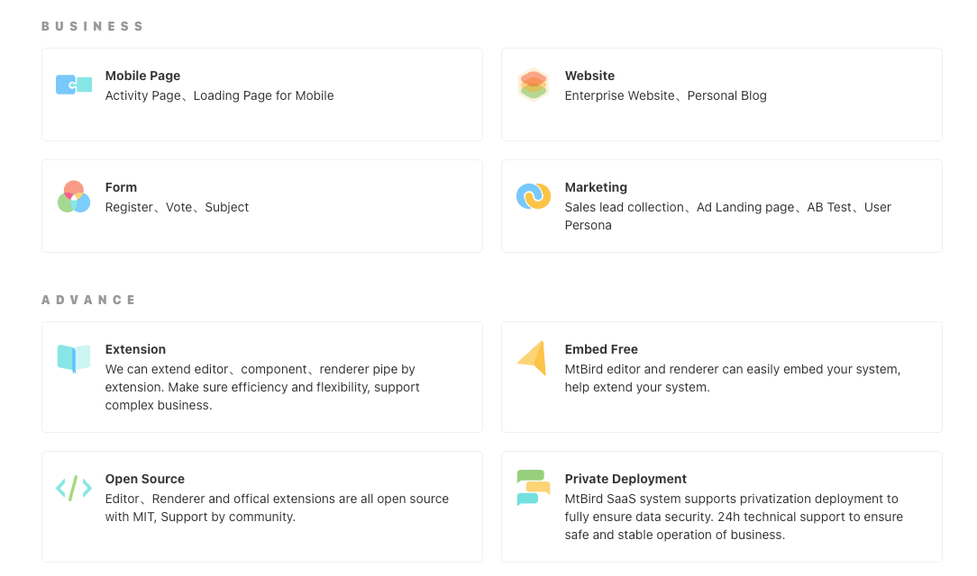 Staringos Mtbird ist ein Low-Code-Editor für die HTML-Seite 、 Website. Wir helfen dabei, die Seite ohne Code oder weniger Code zu erstellen. Es unterstützt auch das WeChat-Mini-Programm. Dies ist ein Repository für Front-End-Editor-Komponenten, siehe Mtbird-Saas für API und Admin-Panel.