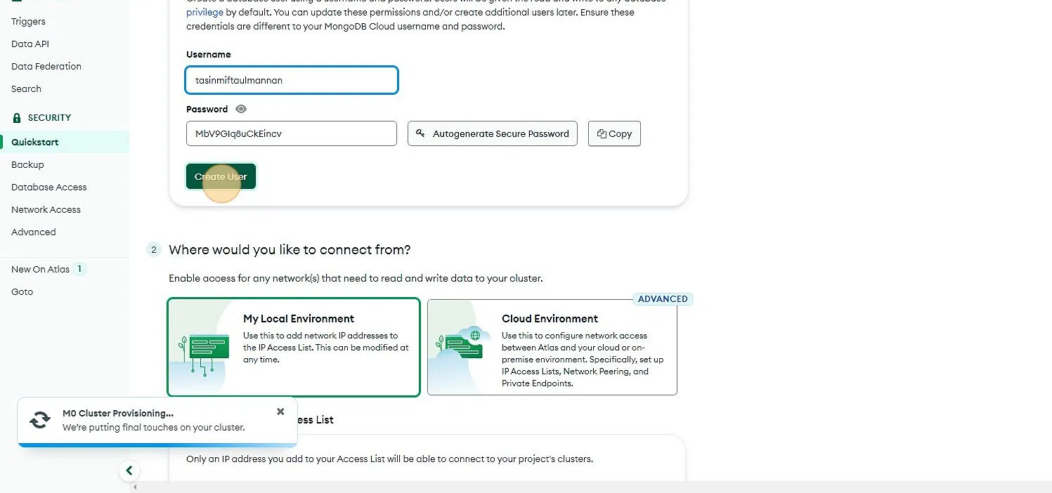 Erstellen Sie einen Benutzer (notieren Sie das Kennwort)