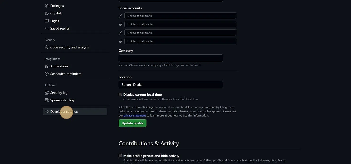 Scrollen Sie nach unten zu Developer contact information und geben Sie Ihre E -Mail ein