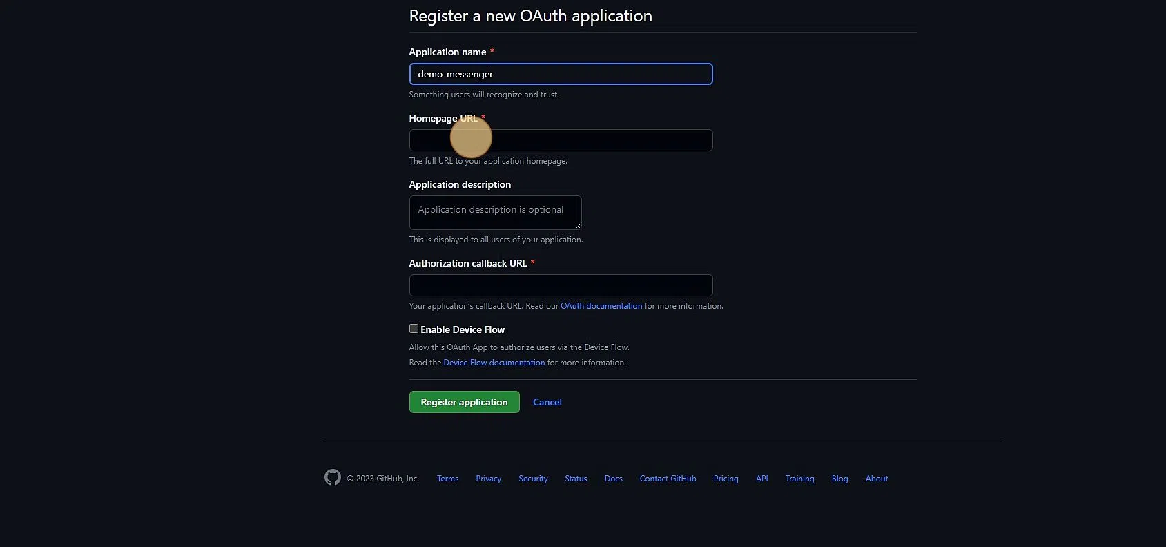 Geben Sie http://localhost:3020/ in der Homepage URL und Authorization callback URL -Felder ein.