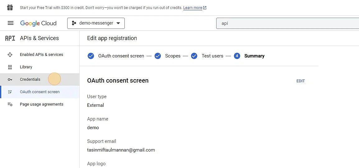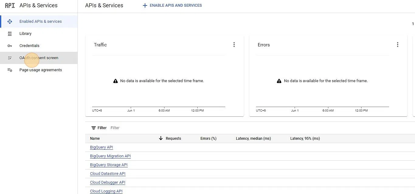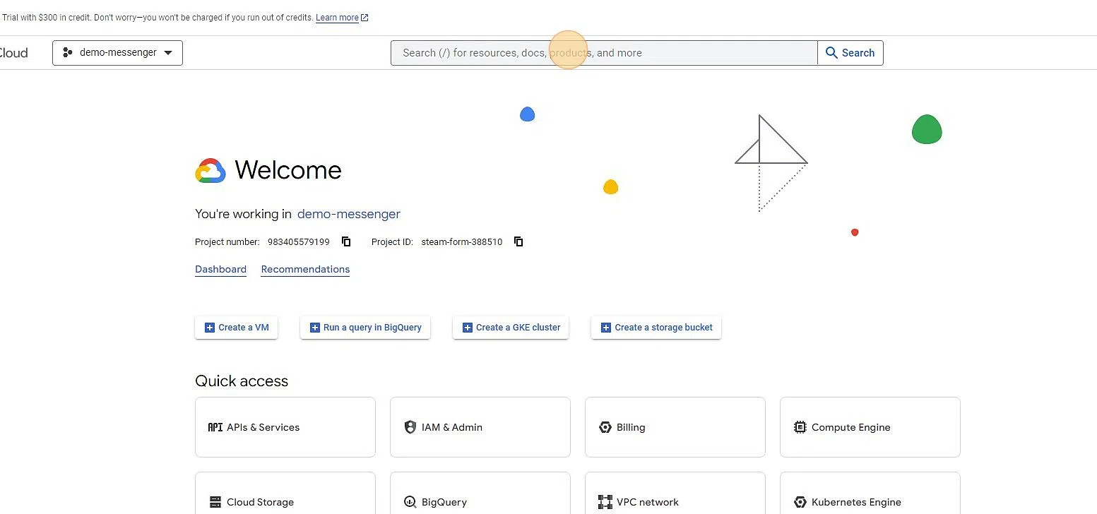 Navigieren Sie zum neu erstellten Projekt und suchen Sie nach API & Services