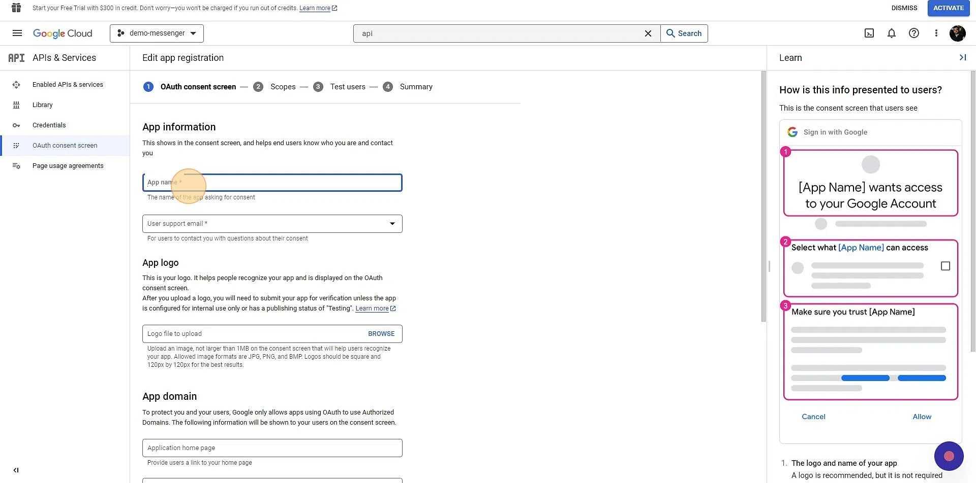 Klicken Sie auf das Feld App name und geben Sie ihm einen Namen
