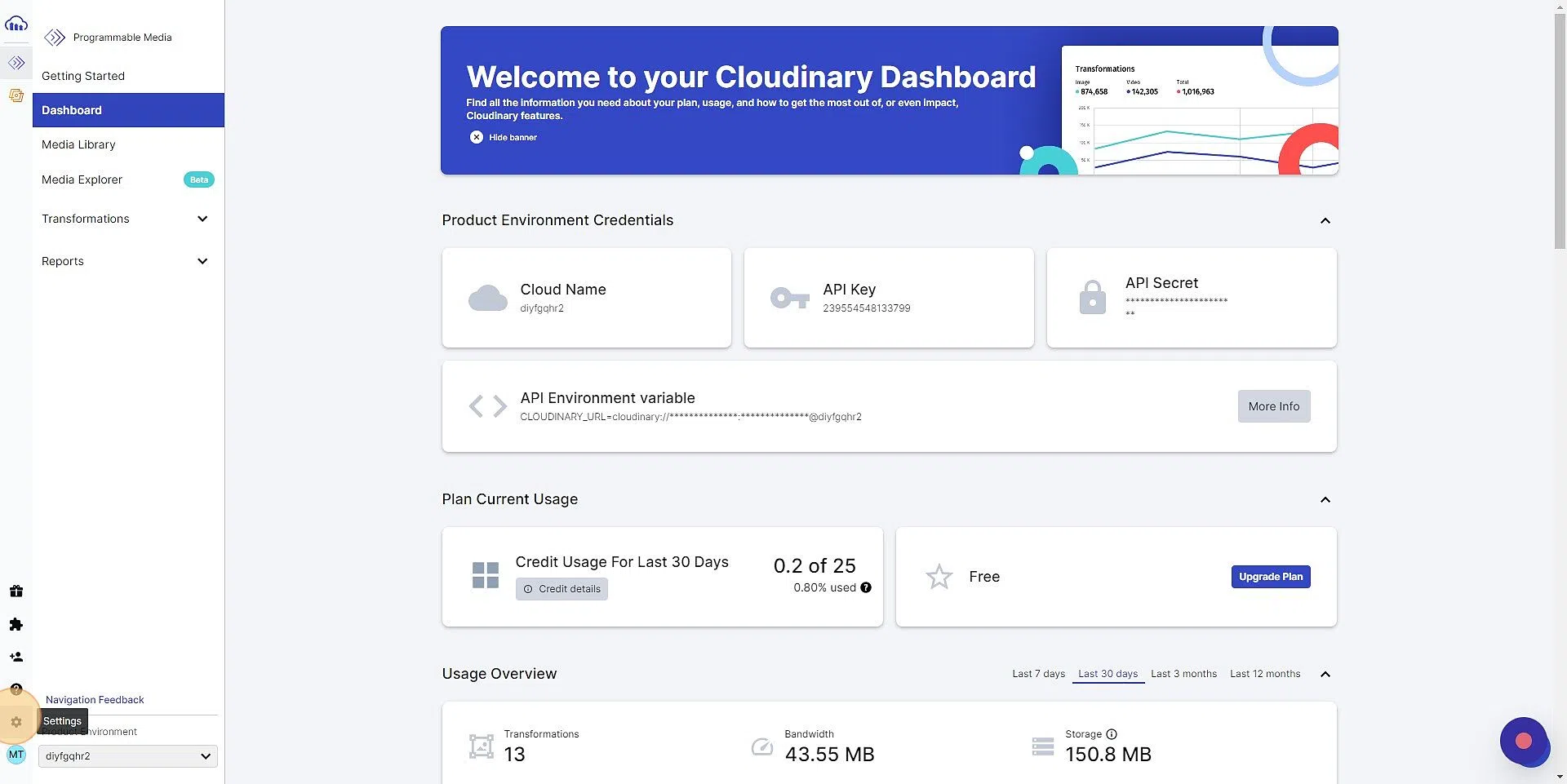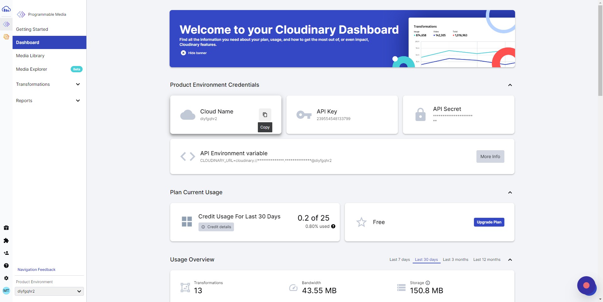 Gehen Sie zum Dashboard und notieren Sie den Cloud name