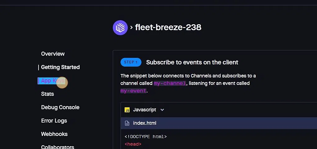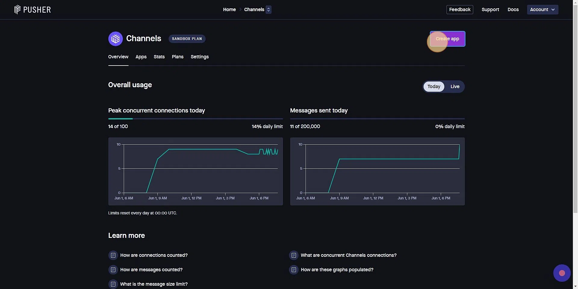 Navigieren Sie zu https://dashboard.pusher.com/channels