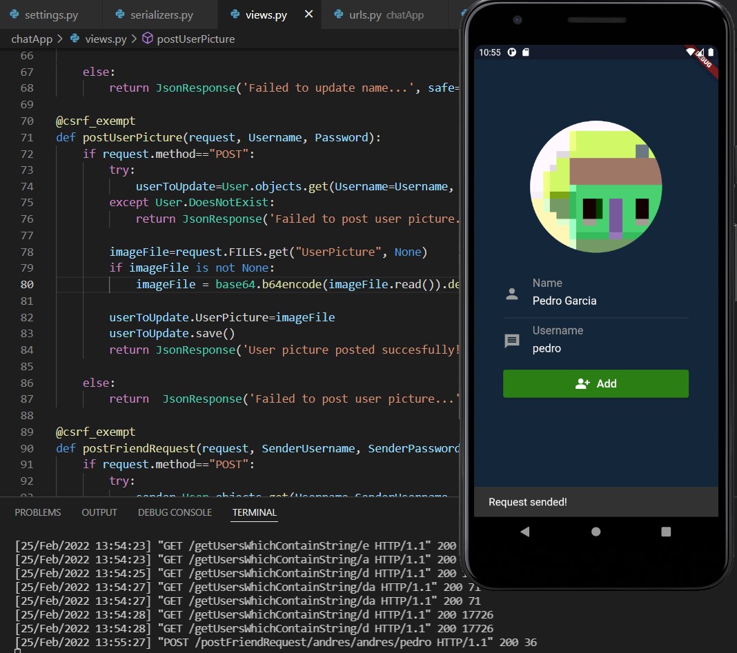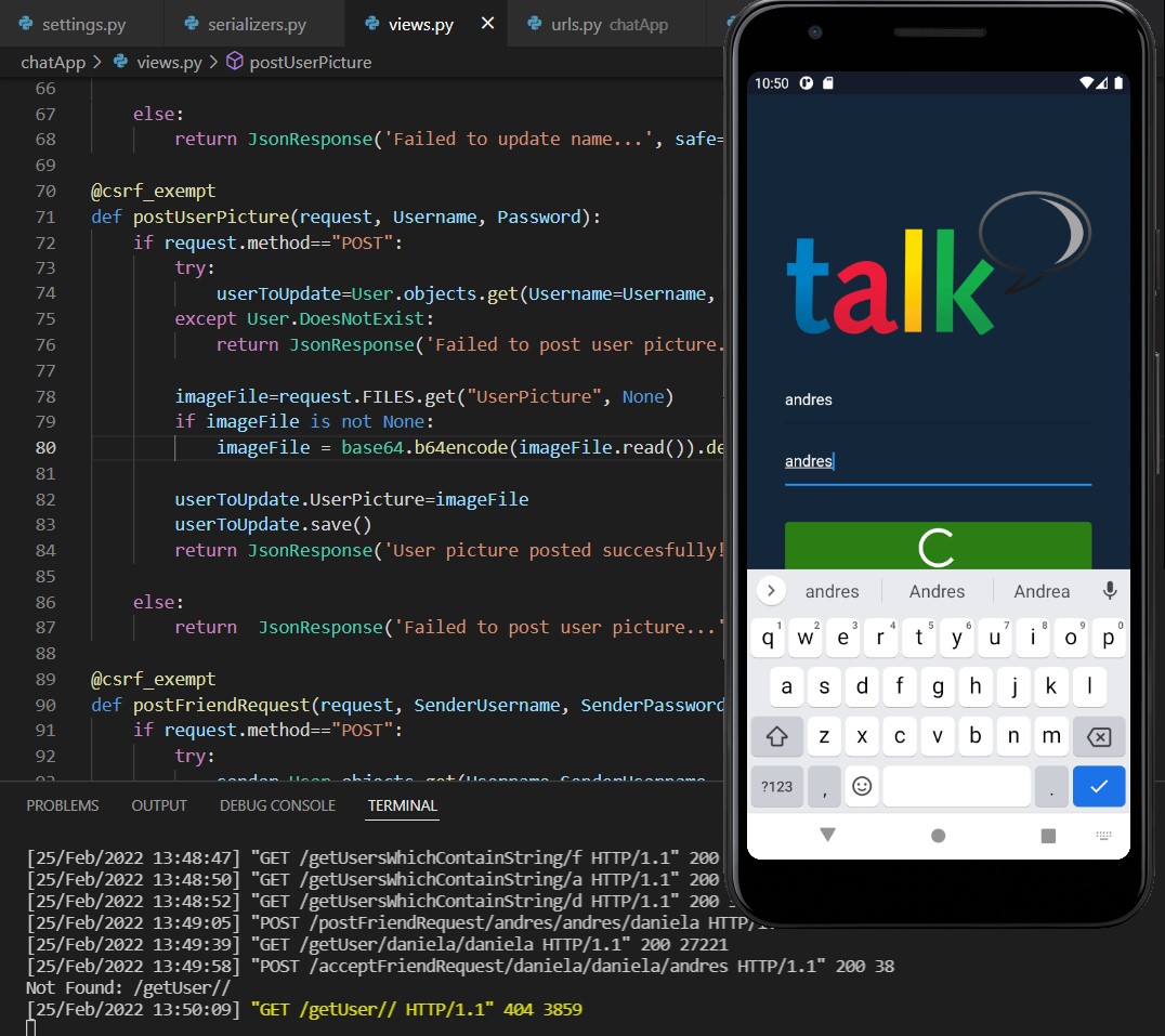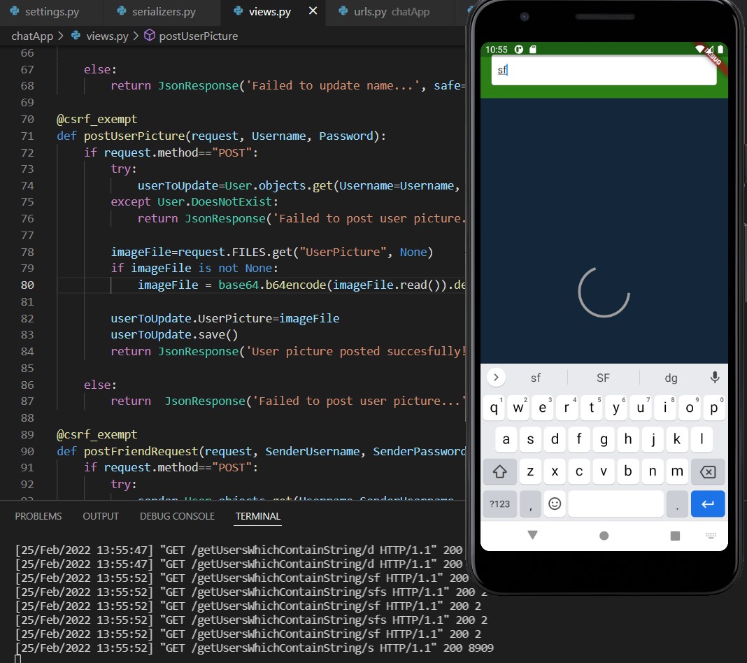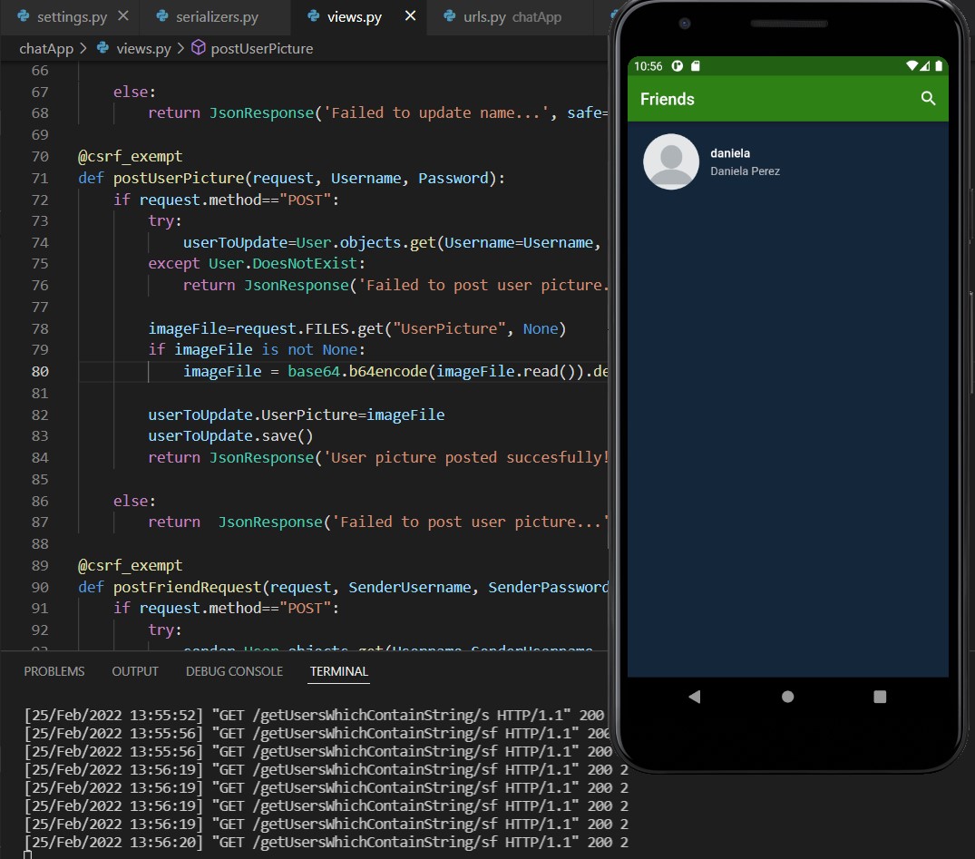 Warnung: Es ist nur wenig übrig, um die Anwendung zu beenden. Es muss die Benutzerregistrierungsbildschirme, Benachrichtigungen im Hintergrund und die Datenaktualisierungen von Freundschaftsanfragen und neuen Freunden über Sockets hinzufügen.