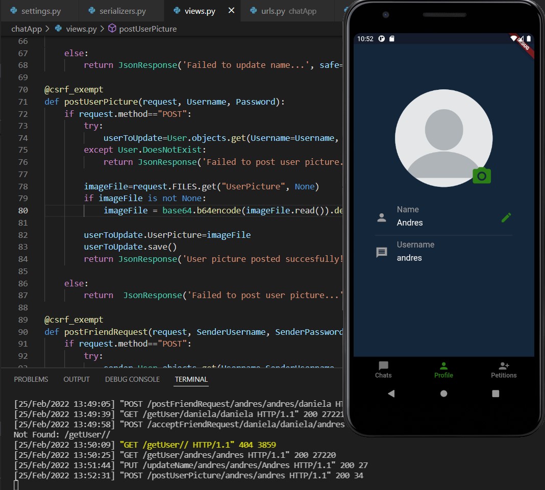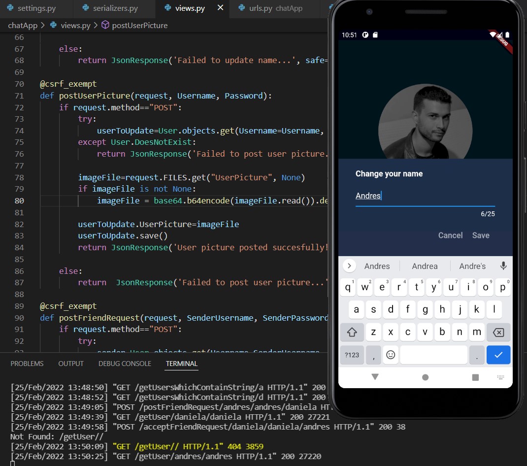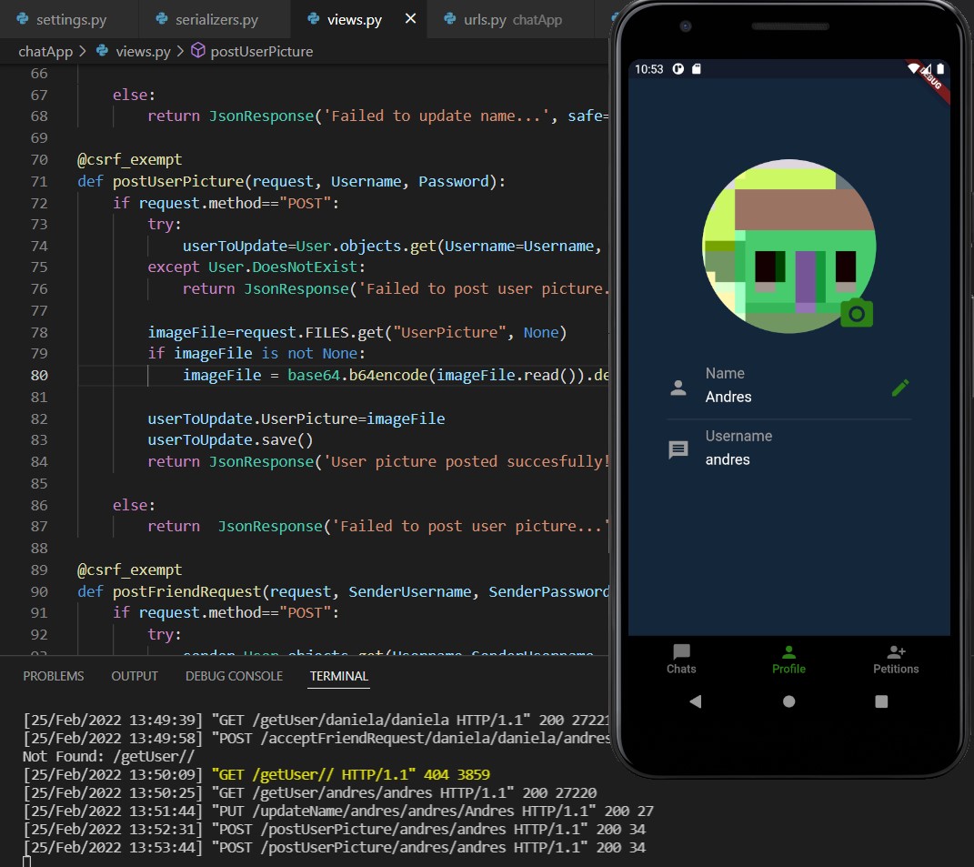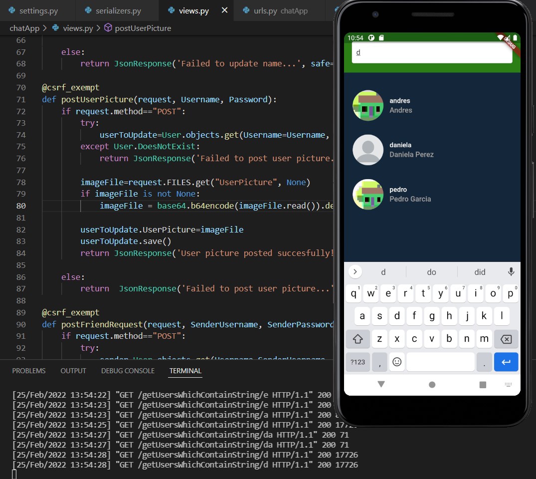 Warnung: Es ist nur wenig übrig, um die Anwendung zu beenden. Es muss die Benutzerregistrierungsbildschirme, Benachrichtigungen im Hintergrund und die Datenaktualisierungen von Freundschaftsanfragen und neuen Freunden über Sockets hinzufügen.