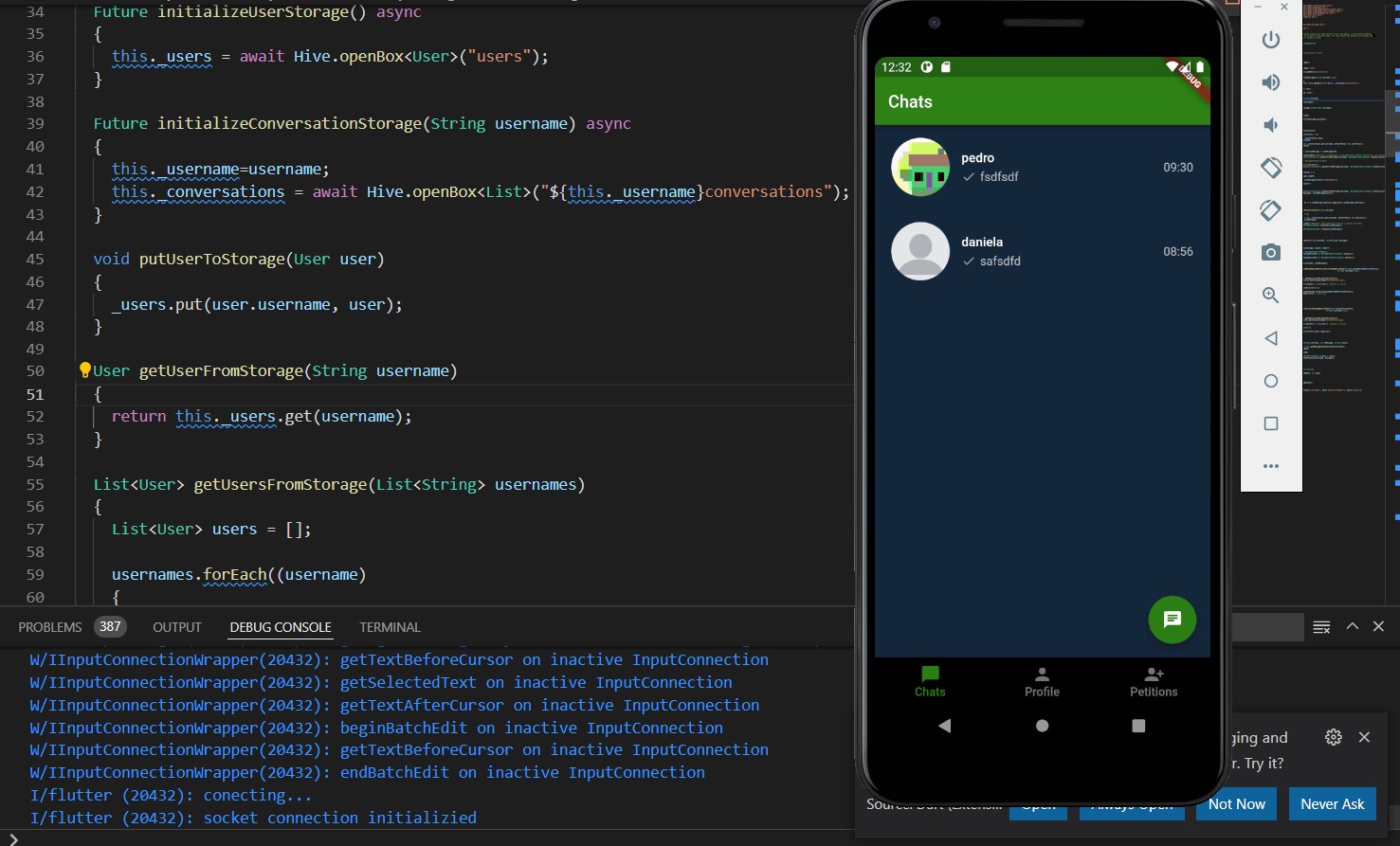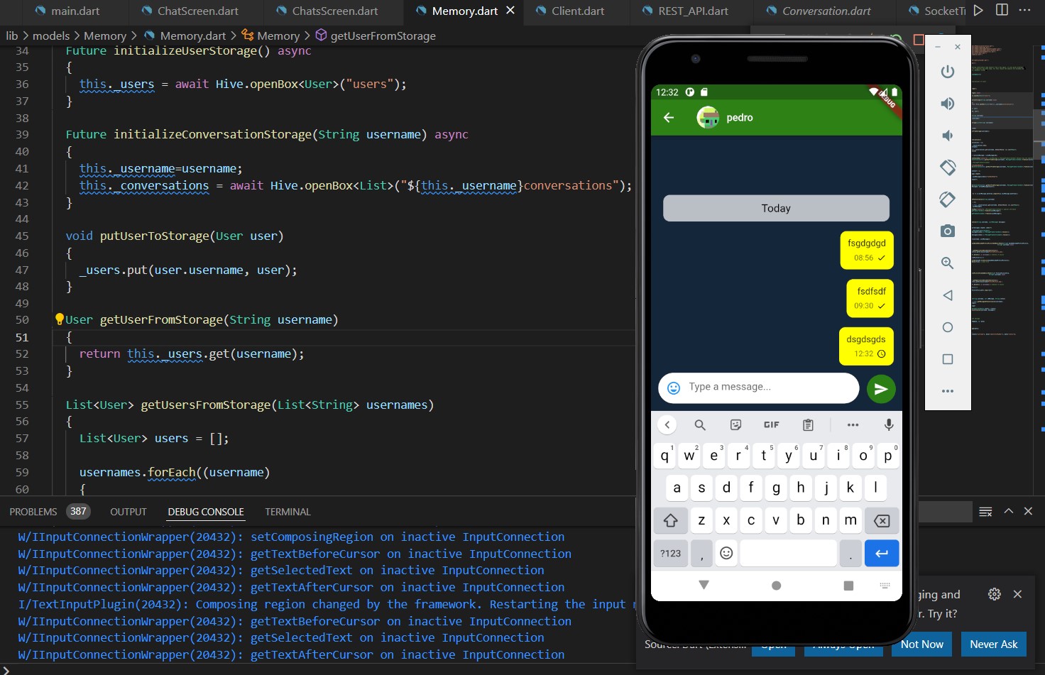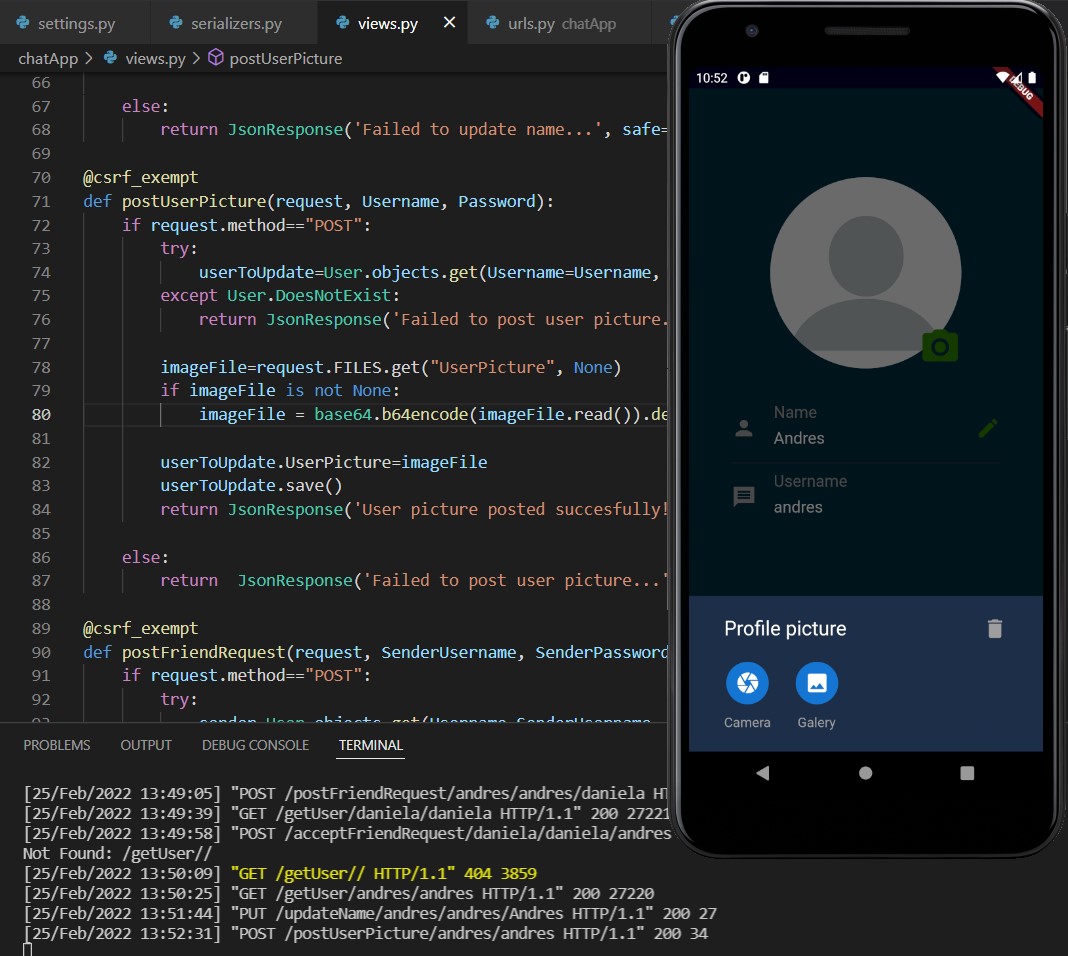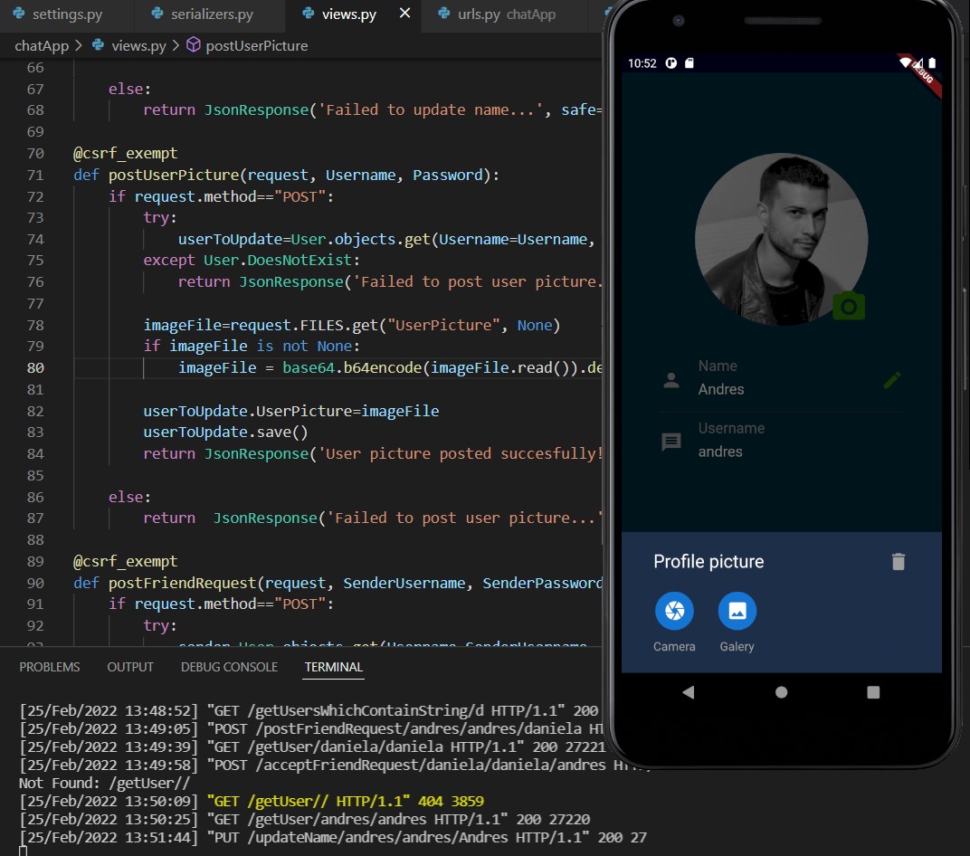 Warnung: Es ist nur wenig übrig, um die Anwendung zu beenden. Es muss die Benutzerregistrierungsbildschirme, Benachrichtigungen im Hintergrund und die Datenaktualisierungen von Freundschaftsanfragen und neuen Freunden über Sockets hinzufügen.
