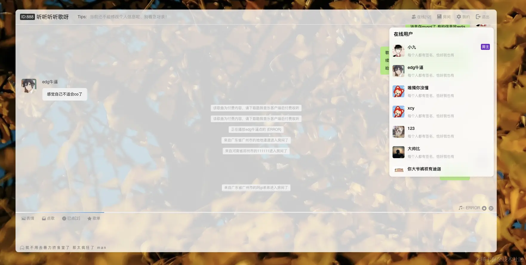3、歌曲实时播放,所有人共享一个实时歌单、一起听歌