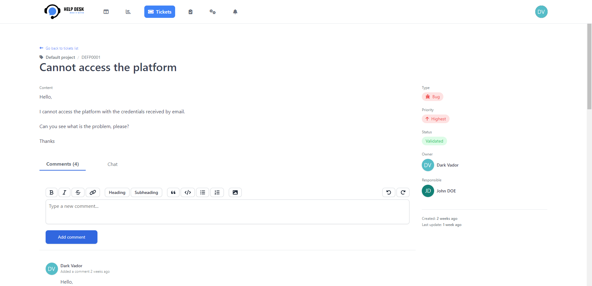 Wir arbeiten immer daran, Help -Desk zu einer besseren Anwendung zu machen, um weitere Informationen zu Aufgaben und Funktionen zu erhalten. Sie können das Helpdesk -Projekt sehen.