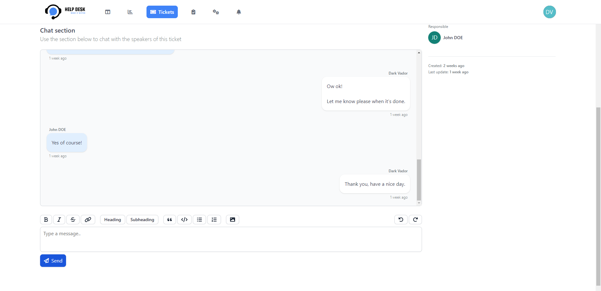 Help Desk ist ein LaRavel -basiertes Projekt, mit dem Sie Ihre Support -Tickets verwalten und mit Ihren Kunden mit einer schönen und einfach zu verwendenden Plattform kommunizieren können.