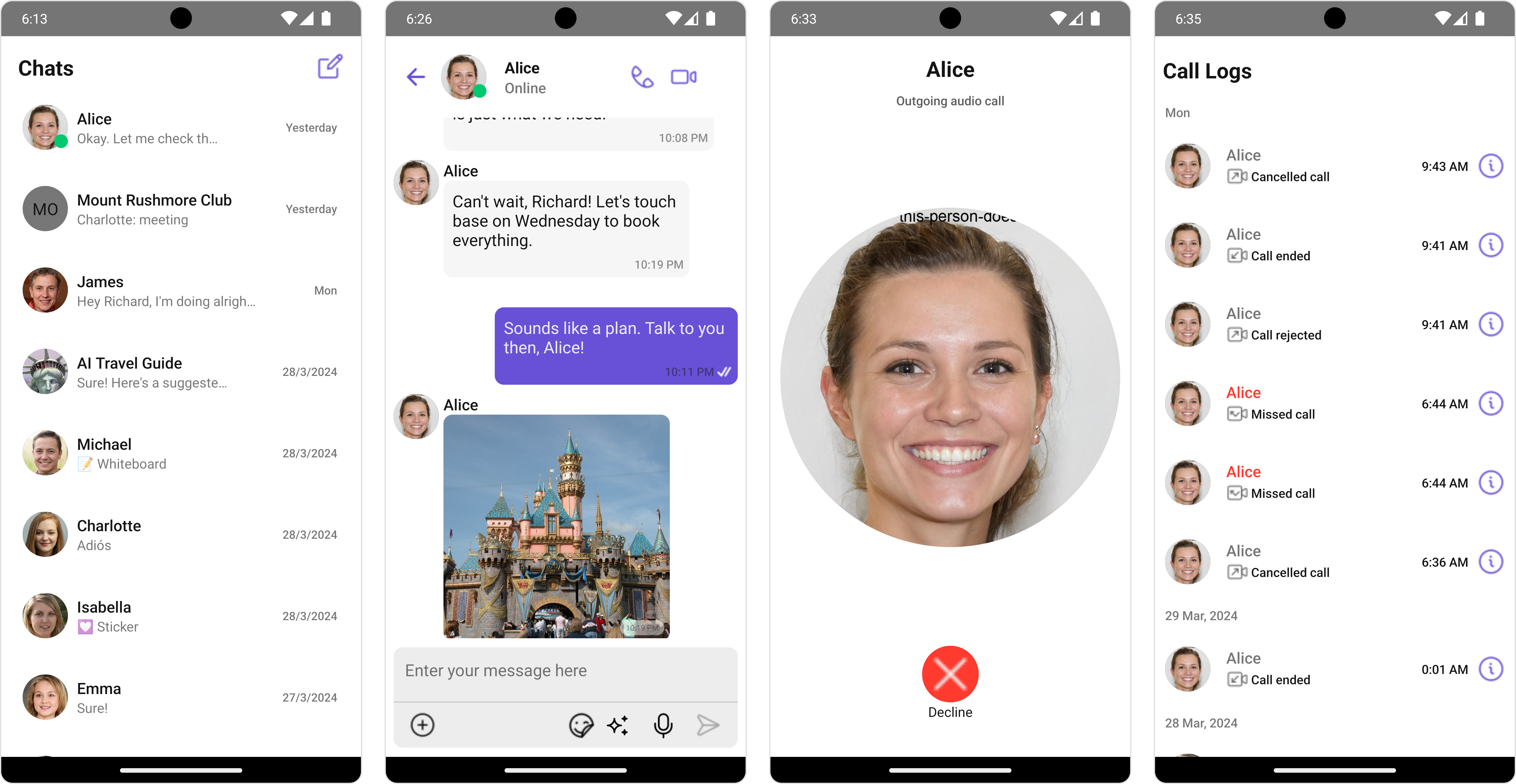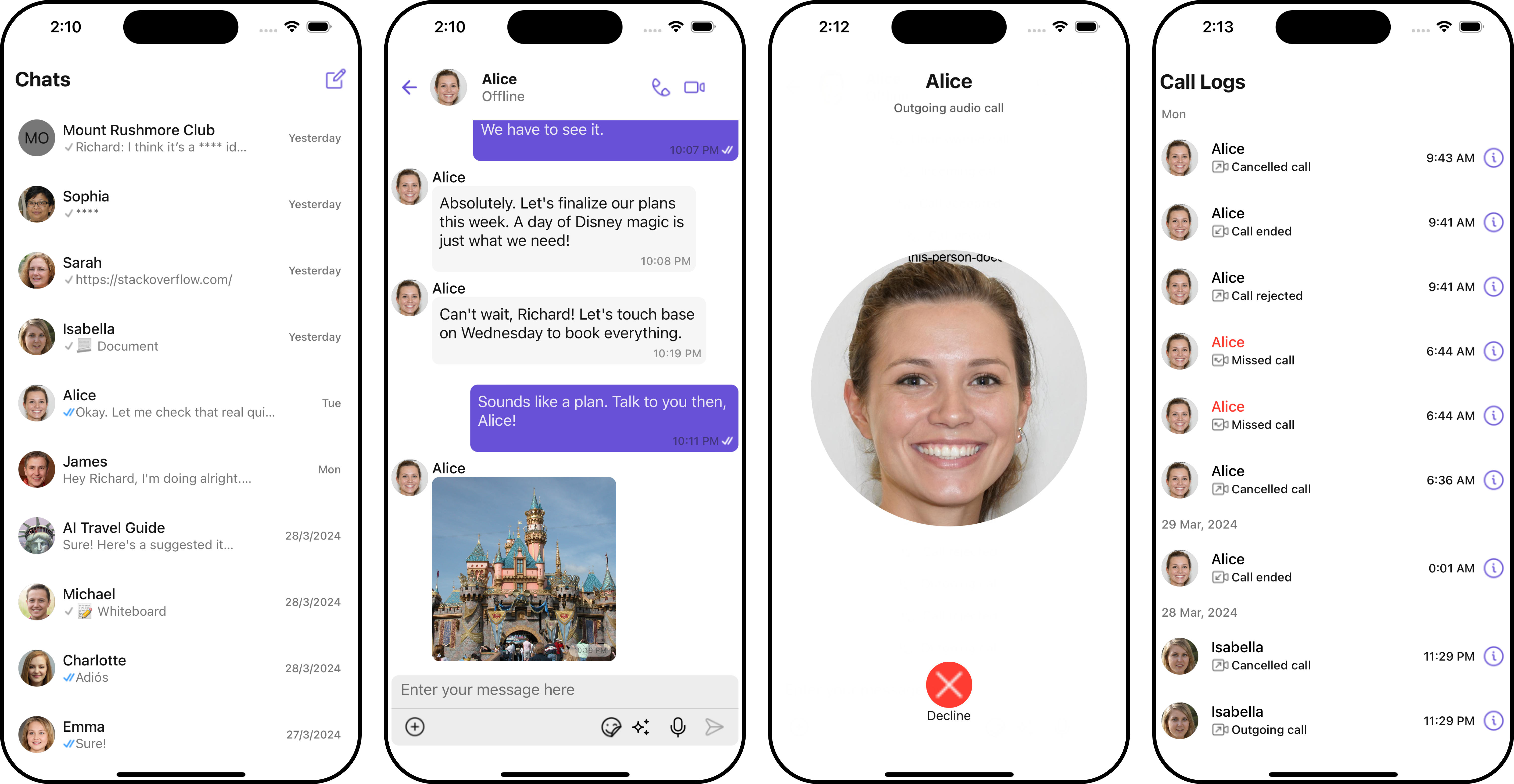 Dies ist eine Referenzanwendung, die die Integration von Cometchats React Native UI -Kit in React Native zeigt. Es bietet Entwicklern praktische Beispiele für die Einbeziehung von Messaging in Echtzeit sowie Sprach- und Videoaufruffunktionen in ihre auf React Native basierenden Anwendungen.