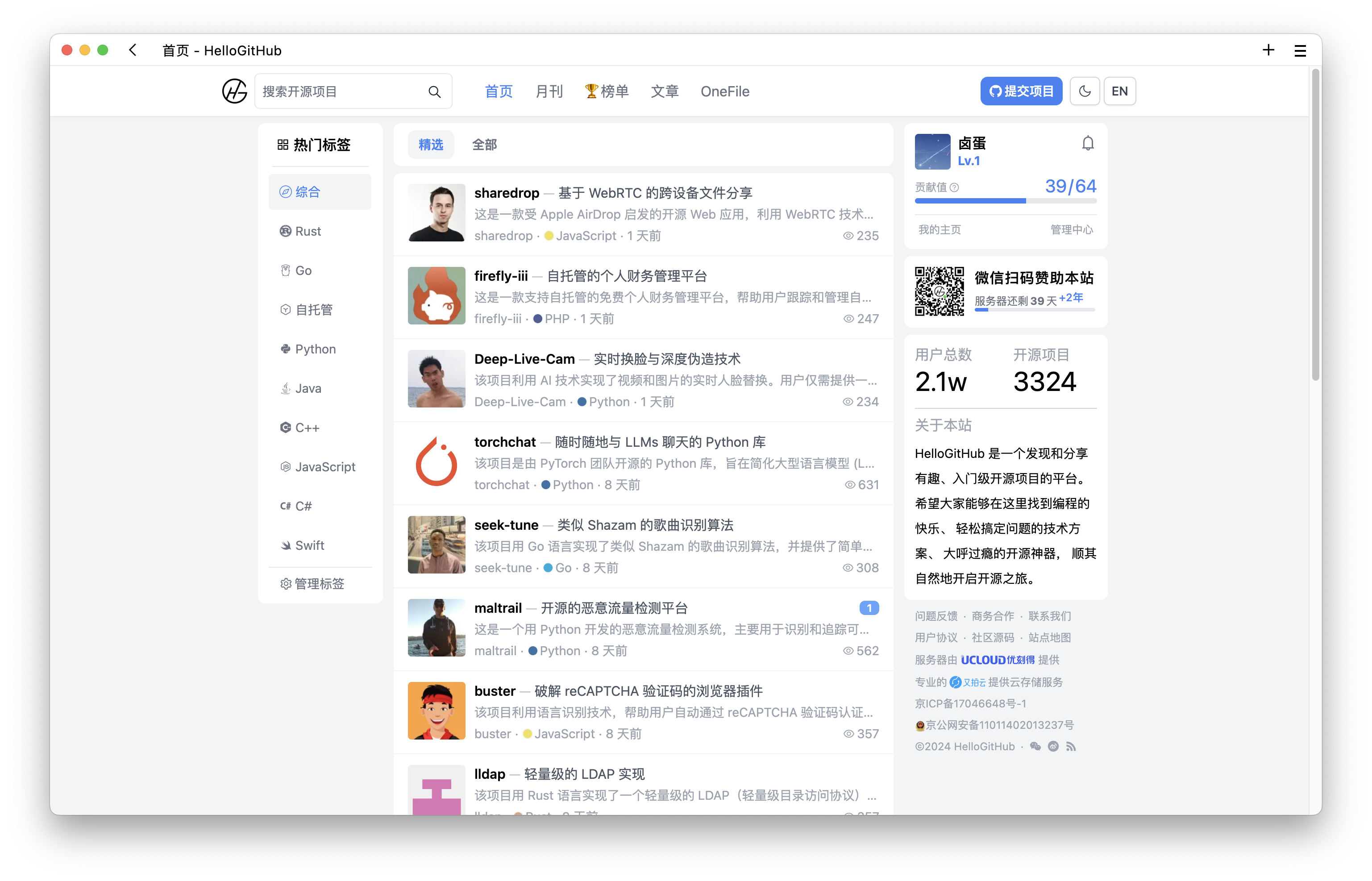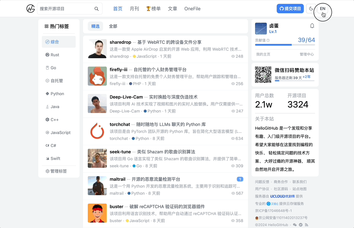 Hellogithub ist eine Plattform, um interessante Open-Source-Projekte für Einstiegsklassen zu entdecken und zu teilen