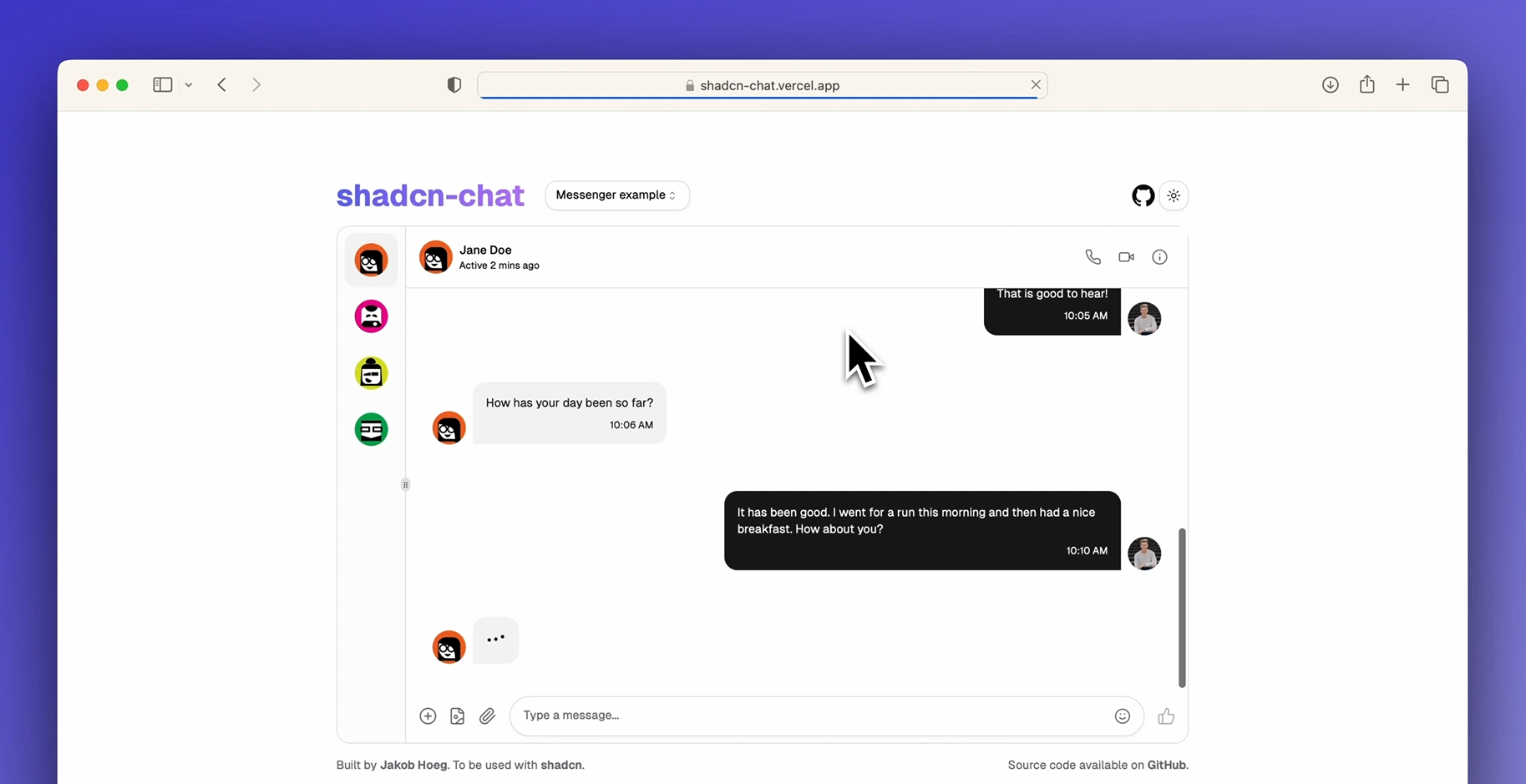 Paket zum Hinzufügen von anpassbaren und wiederverwendbaren Chat-Komponenten zu Ihren Anwendungen. Bauen Sie in wenigen Minuten schöne Chat -Schnittstellen.