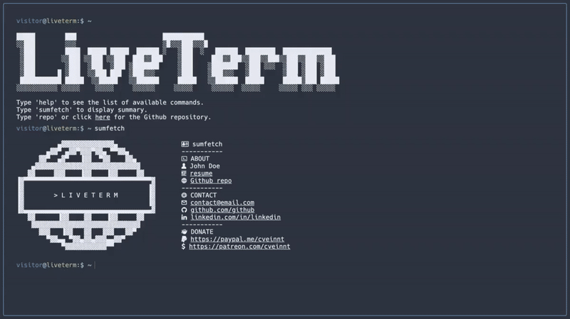 Das Erstellen einer einfachen Website mit Liveterm dauert nur Minuten , und Sie müssen nur mit einer Datei arbeiten: config.json . Nachdem Sie dieses Repository geklont haben, führen Sie einfach yarn install && yarn dev aus und bearbeiten Sie config.json , um Ihre Website zu erstellen!