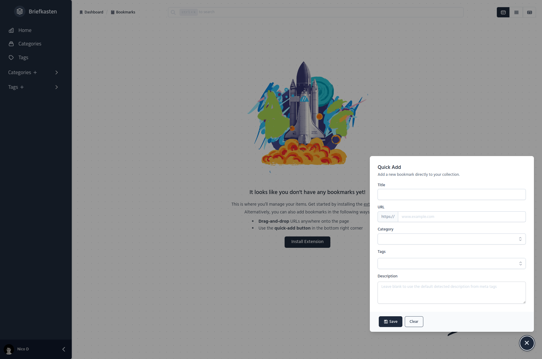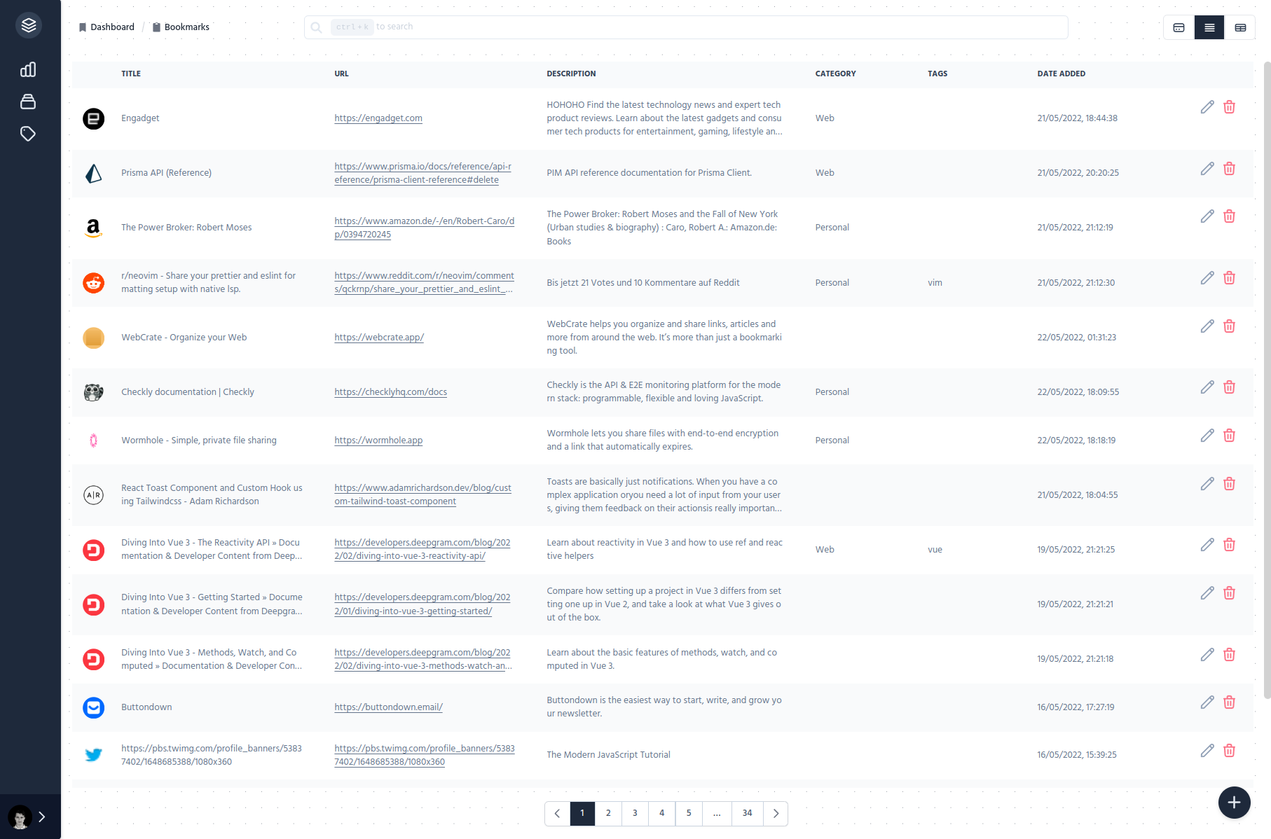Selbst gehostete Lesezeichenanwendung. Arbeitet mit jeder Prisma -kompatiblen Datenbank (MySQL, Postgres, SQLite usw.)