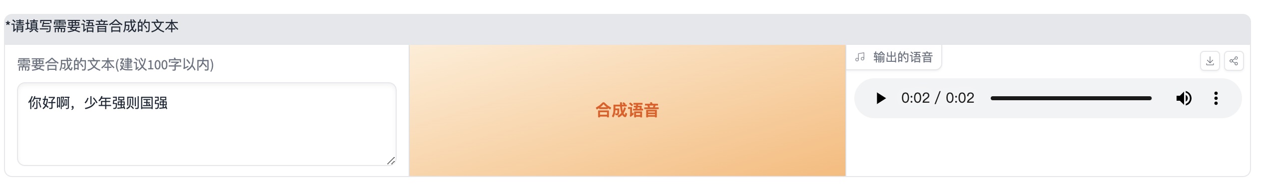 Beispiel ausführen: Beispiele/tts_gradio_demo.py, um die Demo zu sehen: