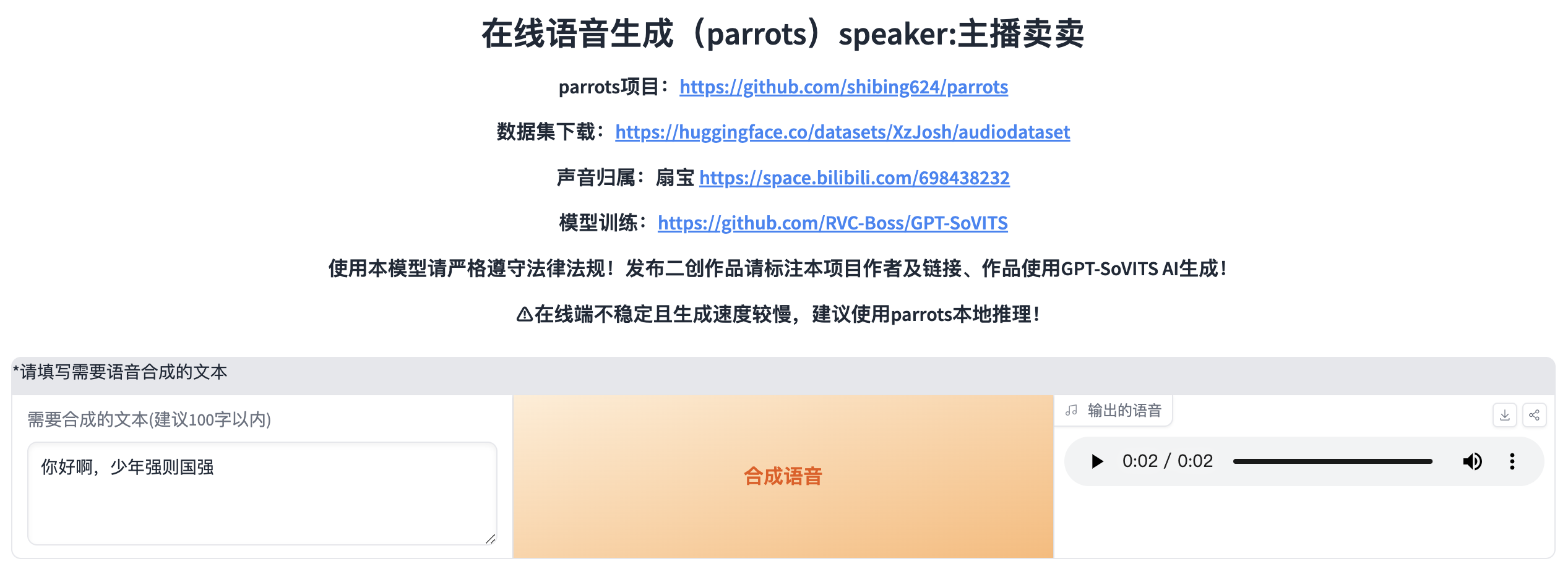 speaker_model_path = "shibing624/parrots-gpt-sovits-speaker-maimai" ,