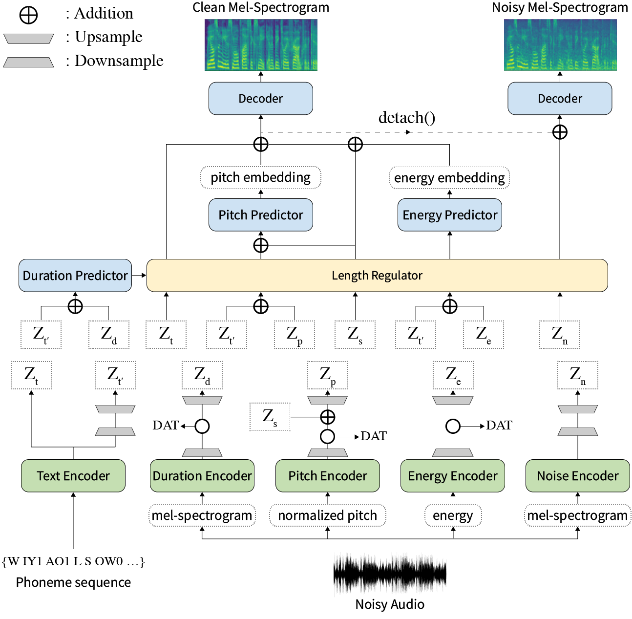 Zusammenfassung: Frühere Arbeiten zur Nerventextextation (TTS) wurden in Bezug auf die begrenzte Geschwindigkeit in der Trainings- und Inferenzzeit, die Robustheit für schwierige Synthesebedingungen, Ausdruckskraft und Kontrollierbarkeit angesprochen. Obwohl mehrere Ansätze einige Einschränkungen lösen, gab es keinen Versuch, alle Schwächen gleichzeitig zu lösen. In diesem Artikel schlagen wir Styler vor, ein ausdrucksstarkes und kontrollierbares TTS-Framework mit Hochgeschwindigkeits- und robuster Synthese. Unsere neuartige Audio-Text-Ausrichtungsmethode namens Mel Calibrator und ohne autoregressive Dekodierung ermöglicht ein schnelles Training und Inferenz und eine robuste Synthese zu unsichtbaren Daten. Außerdem vergrößert sich die Modellierung des Stilfaktors unter Aufsicht unter Überwachung die Kontrollierbarkeit bei der Syntheseprozesse, die zu ausdrucksstarken TTs führt. Darüber hinaus ermöglicht eine neuartige Rauschmodellierungspipeline mit Domänengegner und Restdekodierung den Rauschen-Robust-Stil, der das Rauschen ohne zusätzliche Etikett zerlegt. Verschiedene Experimente zeigen, dass Styler in Geschwindigkeit und Robustheit effektiver ist als ausdrucksstarke TTs mit autoregressiver Decodierung und ausdrucksvoller und kontrollierbarer als nicht-autoregressive TTs im Lesen. Syntheseproben und Experimentergebnisse werden über unsere Demo -Seite bereitgestellt, und Code ist öffentlich verfügbar.