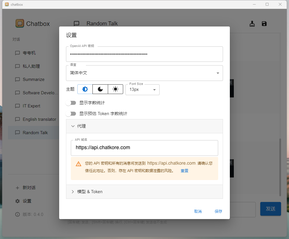 API_URL_REDIRECT = { "https://api.openai.com/v1/chat/completions" : "https://api.chatkore.com/v1/chat/completions" }Download Link: https://github.com/chanzhaoyu/chatgpt-web