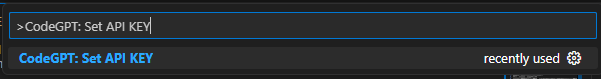 Gehen Sie erneut zu VSCODE zurück, drücken Sie Strg+Shift+P, geben Sie die CODEGPT ein: Setzen Sie die API-Taste im Popup-Feld und klicken Sie auf CODEGPT: API-Taste festlegen. Geben Sie dann den gekauften Schlüssel ein.