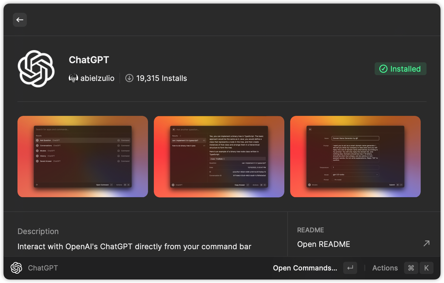 Suchen Sie das ChatGPT -Plugin im Raycast Store und folgen Sie den Installationsangeboten: