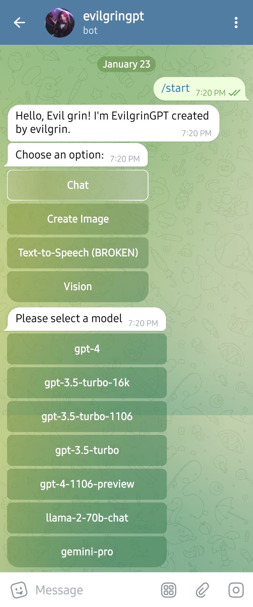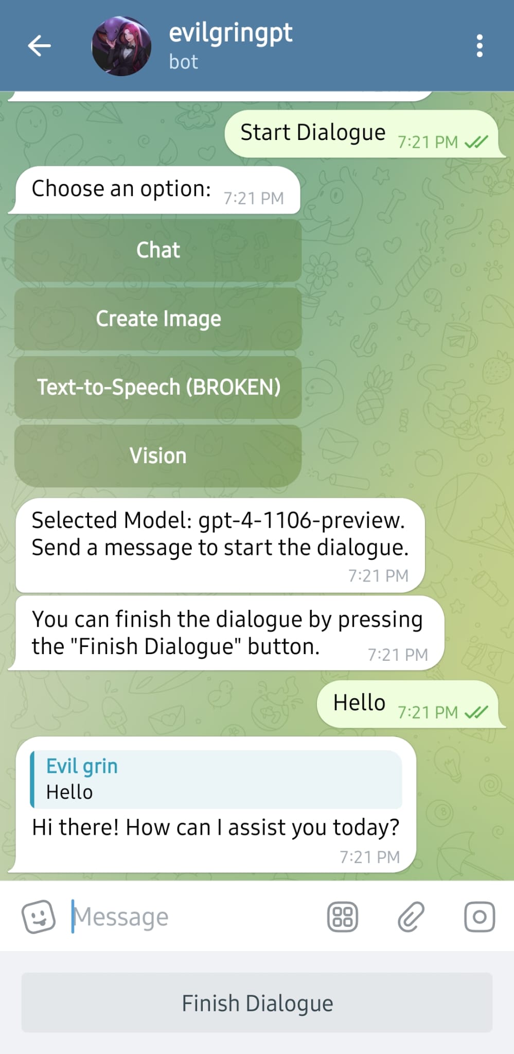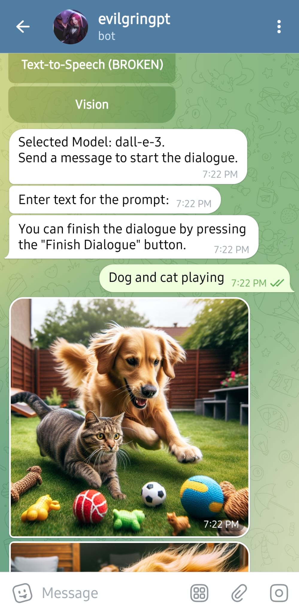 Telegramm -Bot für Chat -Vervollständigungen, Bildgenerierung, Text zur Sprache