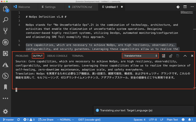 Dies ist eine VSCODE-Erweiterung für Multisprachel-Textübersetzung und TTS (Text-to-Speech) unter Verwendung von Azure Cognitive Services.