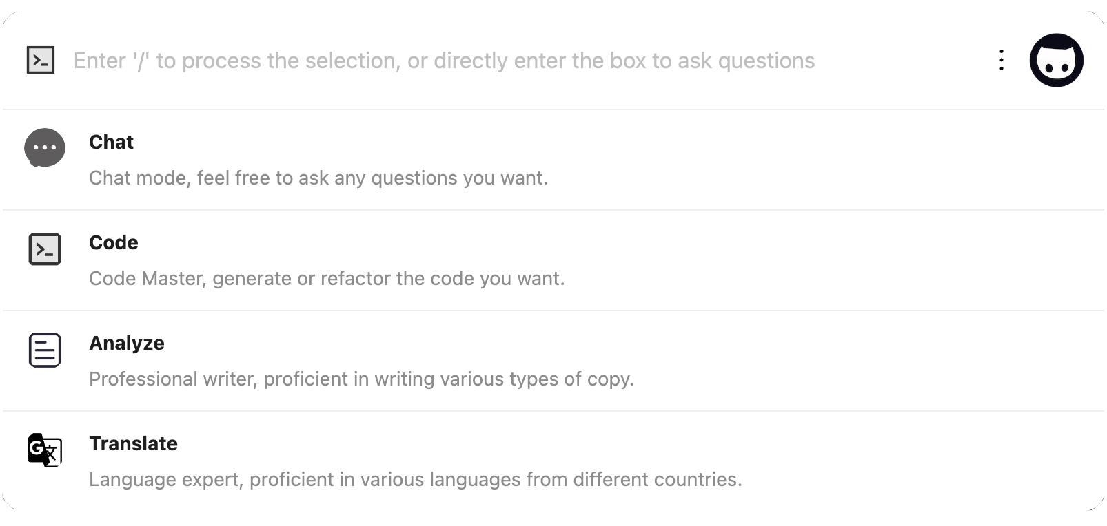 Grundlegende Fähigkeiten wie Chating- und Schaltfunktionen können normal verwendet werden, andere wie die Auswahl und Anwendung von IDE -Code sowie die Browser -Inhaltserfassung erfordern native Funktionen (AppleScript wird auf der Mac -Plattform verwendet), die noch nicht unter Windows unterstützt wird. In Zukunft wird VBScript in Betracht gezogen, um ähnliche Funktionen zu implementieren.