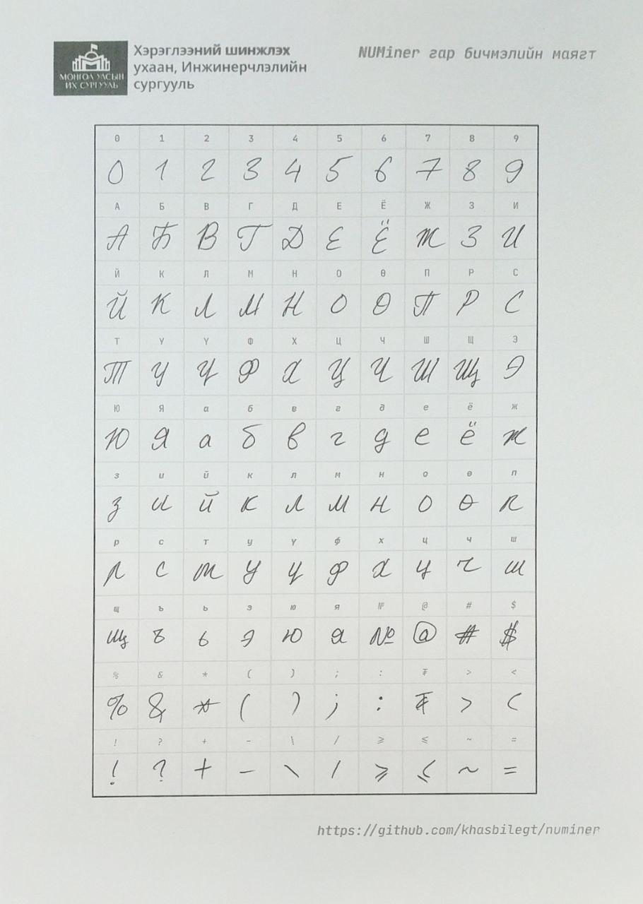 $ numiner -l/--letter < source > < result > Sie können auch die Standardblattbezeichnungen überschreiben, indem Sie json -Datei angeben: