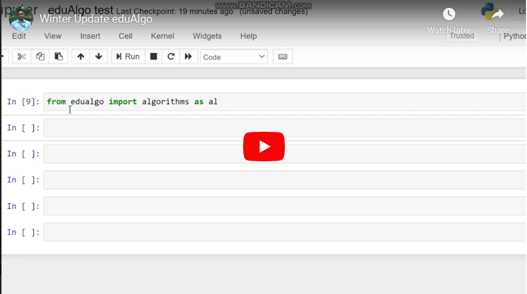 Ein Python -Paket, das bei PYPI veröffentlicht wurde. Das Projekt kann hier angesehen werden => pypi - Edualgo. Vergessen Sie nicht, ein Problem zu erstellen, bevor Sie eine PR erstellen, und machen Sie immer PR zu diesem Repo - Haupt Edualgo