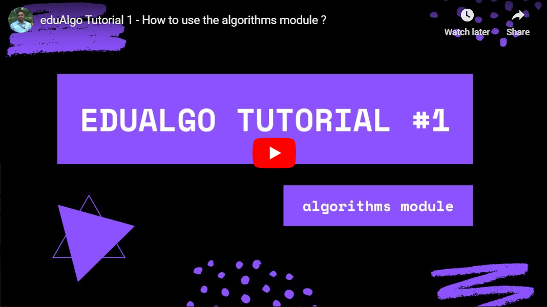 Die Dokumentation für die eingeschlossenen Methoden und ihre Implementierungen finden Sie hier => Edualgo-Documentation