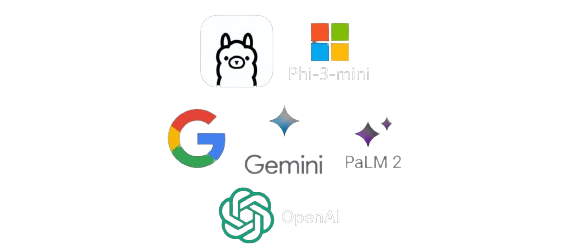 Wählen Sie, welches sprachliche Modell zwischen PH-3, GPT 3.5 Turbo, Gemini 1.5 Pro und Palm 2 Bison verwendet werden soll