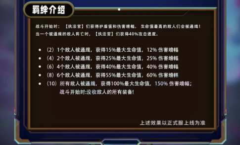 Wirkung erzielen: Zu Beginn des Kampfes erhalten [Justizbeamte] einen höheren Schildwert und eine höhere Schadenserhöhung, und der Feind mit dem höchsten Gesundheitswert wird gesucht! Wenn ein gesuchter Feind stirbt, erhalten [Strafverfolgungsbehörden] 40 % Angriffsgeschwindigkeit.