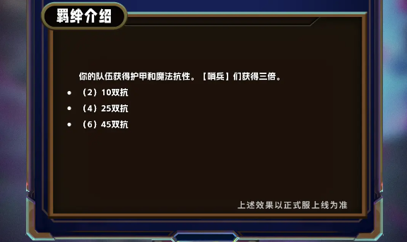 Buff : Verbündete erhalten 10 Rüstung und Magieresistenz. [Festungswächter] erhalten mehr Rüstungs- und Magieresistenzboni, die in den ersten 10 Sekunden des Kampfes um 100 % steigen.
